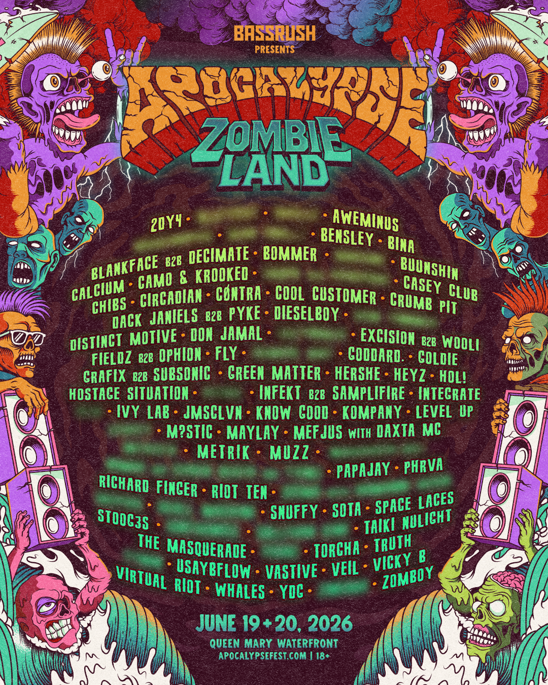 Long Beach, CA – March 9th – The world’s foremost curator of dance music experiences. Apocalypse: Zombieland will return to the historic Queen Mary Waterfront in Long Beach, CA, on Friday, June 19, and Saturday, June 20, 2026, as announced today by Insomniac. With the support of Insomniac’s Bassrush brand, the upcoming festival will feature four stages and more than 80 acts. Additional details will be announced soon. By including some of the most cutting-edge names in dubstep, drum & bass, riddim, and other subgenres of modern bass music, the festival’s fire lineup solidifies its aim to showcase all aspects of this genre.