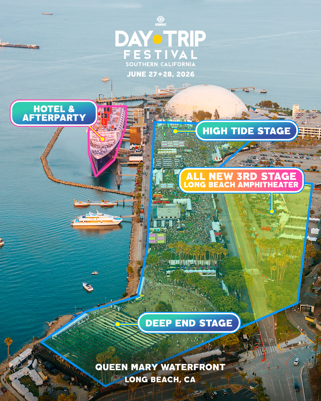 Summer in Southern California has a sound – rolling basslines over ocean air, sunsets painted in house music rhythms, and thousands of people dancing along the waterfront. In 2026, Day Trip Festival returns to Long Beach bigger than ever, expanding its footprint and debuting the brand-new Long Beach Amphitheater as a third stage for the first time in the festival’s history.