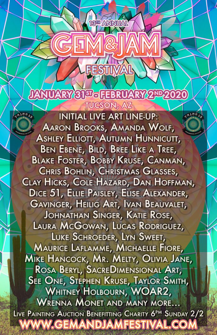 Gem and Jam 2020 is kicking it into high gear! In true AZ style, the Tuscon desert will come alive on January 31st and will continue through February 2nd at the Pima County Fairgrounds. If you like gem stones, jammin’ music and endless parties then you sure don’t wanna miss this. For their 13th installment, the Gem and Jam crew is bringing us an incredible lineup, live artists and a whole lot of gemstone vendors. The festival features single day tickets as well as full passes that include camping. To immerse yourself in the magic, I’ve found that camping is the way to go! Not only do you experience the entire range of artists and musicians, you become part of the ever-changing community with surprises around every corner. You find yourself at home in a place of love, acceptance and unrestricted creativity.