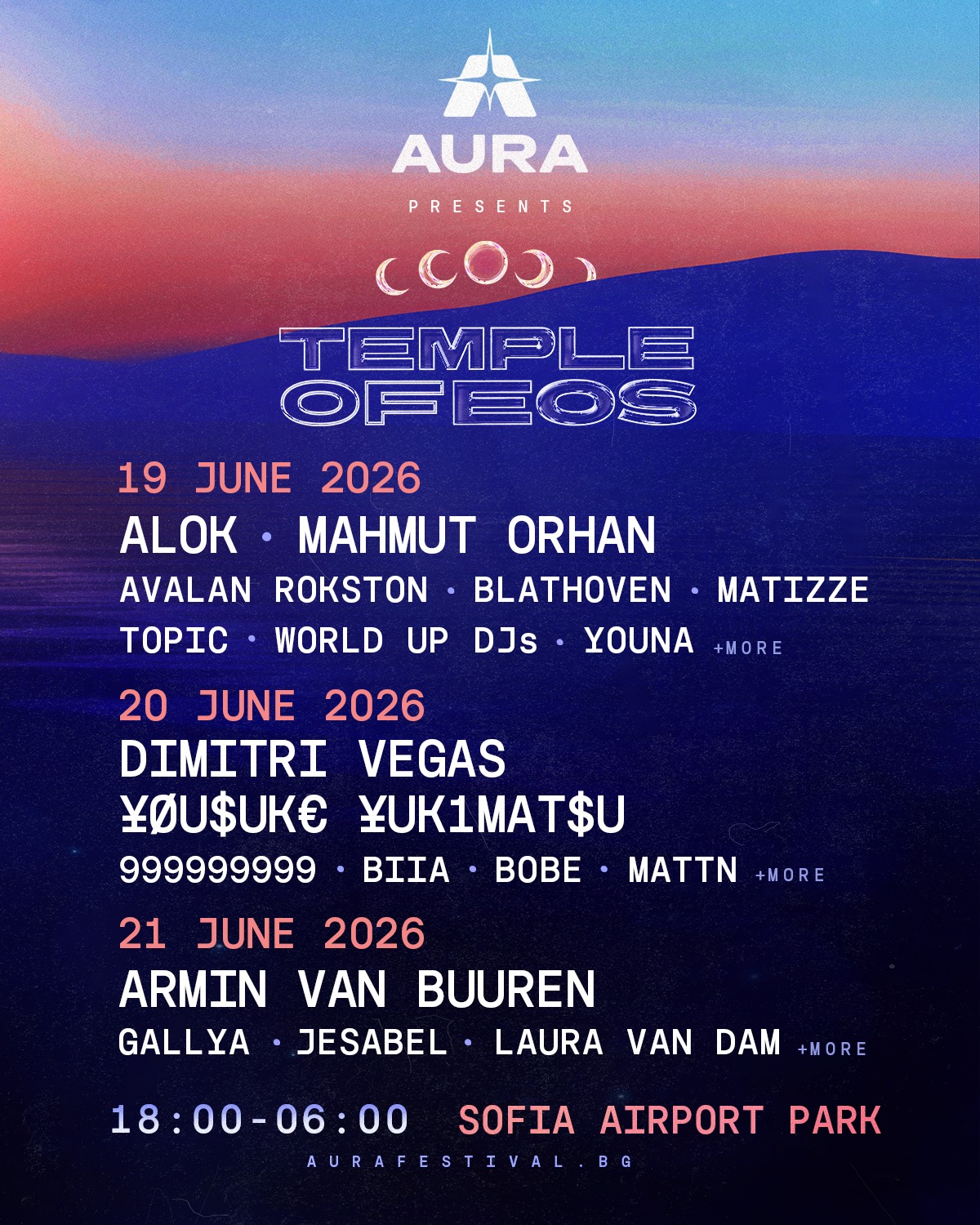 AURA Festival Bulgaria returns in 2026 with another immersive conceptual escape across an epic three-day programme from 19–21 June 2026. Taking place at a new location with expanded capacity and extended operating hours until dawn, this will be the most spectacular edition yet.