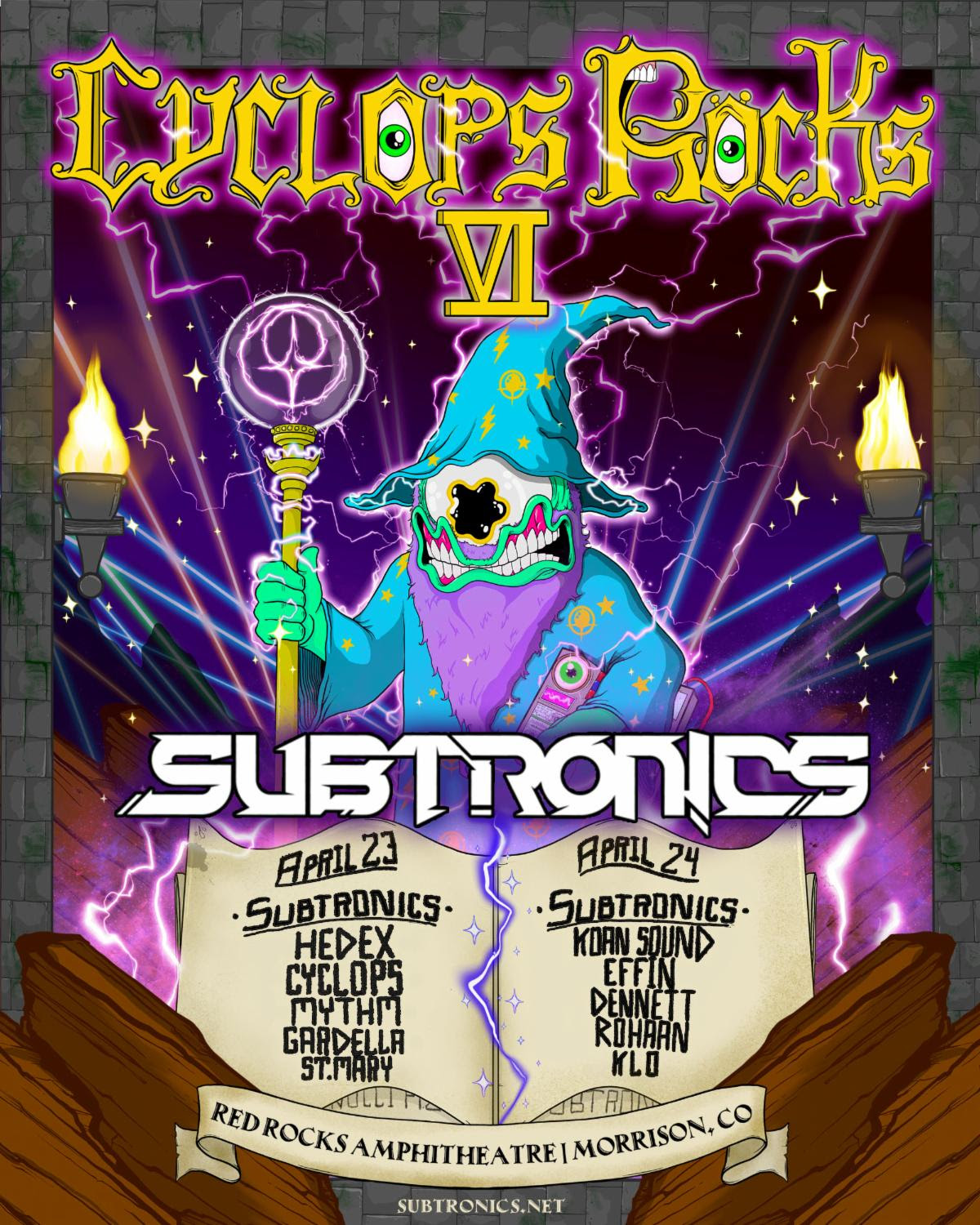Electronic music artist and boundary pusher Subtronics has announced the sixth edition of Cyclops Rocks, his annual two-night run at Red Rocks Amphitheatre, taking place April 23–24. Cyclops Rocks 6 follows the launch of Subtronics’ first headline tour in two years, the FIBONACCI Tour, in support of his December 2025 album release of the same name. Kicking off on January 23 in Toronto, the tour marks a groundbreaking new chapter in his live career. Presale tickets for Red Rocks 6 launch this Thursday, January 15 at 10 am MT. Sign up for access to the presale code using https://laylo.com/subtronics/cyclopsrocksvi. Tickets for all other shows are on sale now at www.subtronics.net/tour.